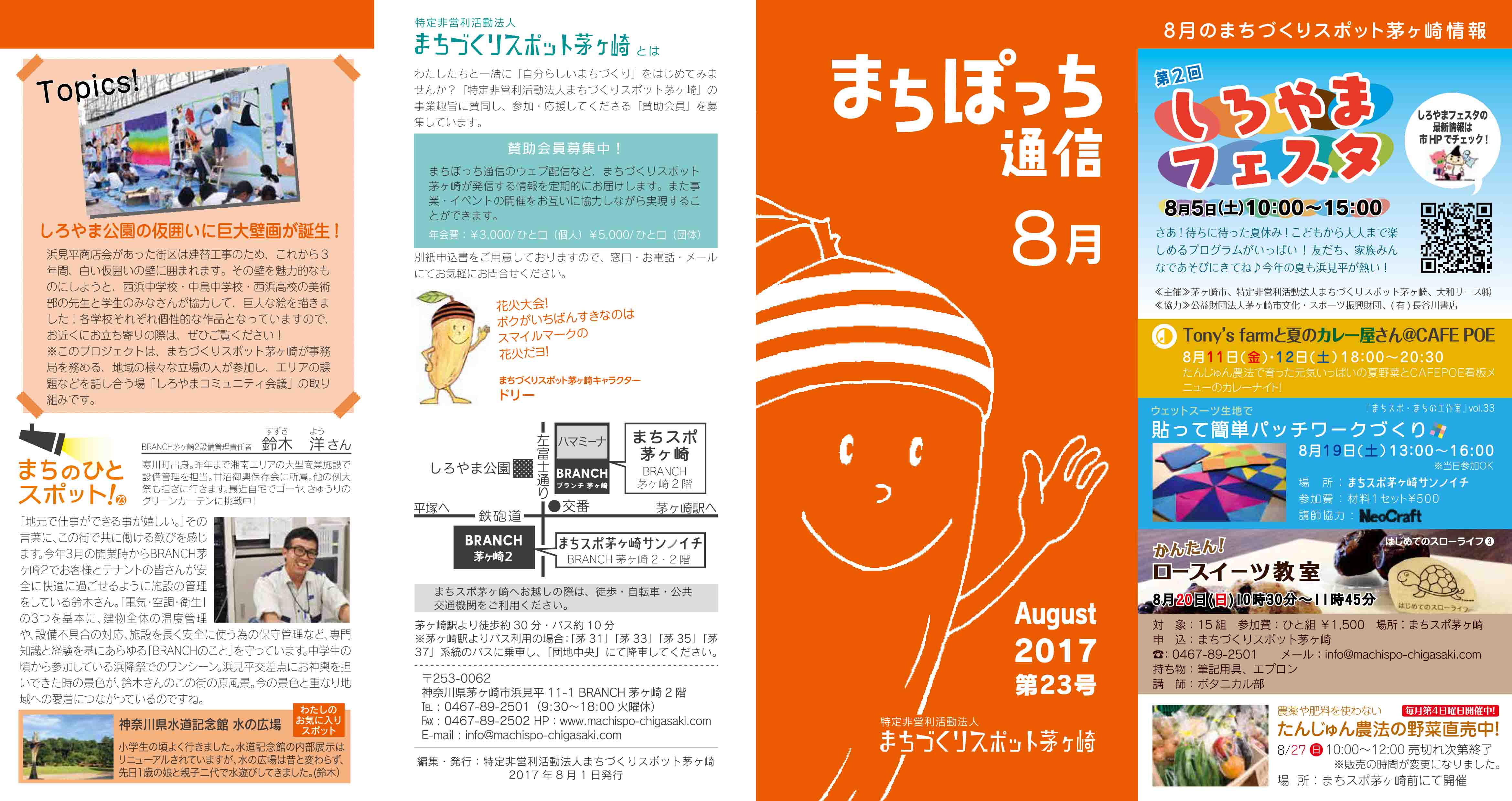 『第2回しろやまフェスタ』、『Tony’s farmと夏のカレー屋さん@CAFE POE』、『ウェットスーツ生地で貼って簡単パッチワークづくり』、はじめてのスローライフ3『かんたん!ロースイーツ教室』、たんじゅん農法の野菜直売