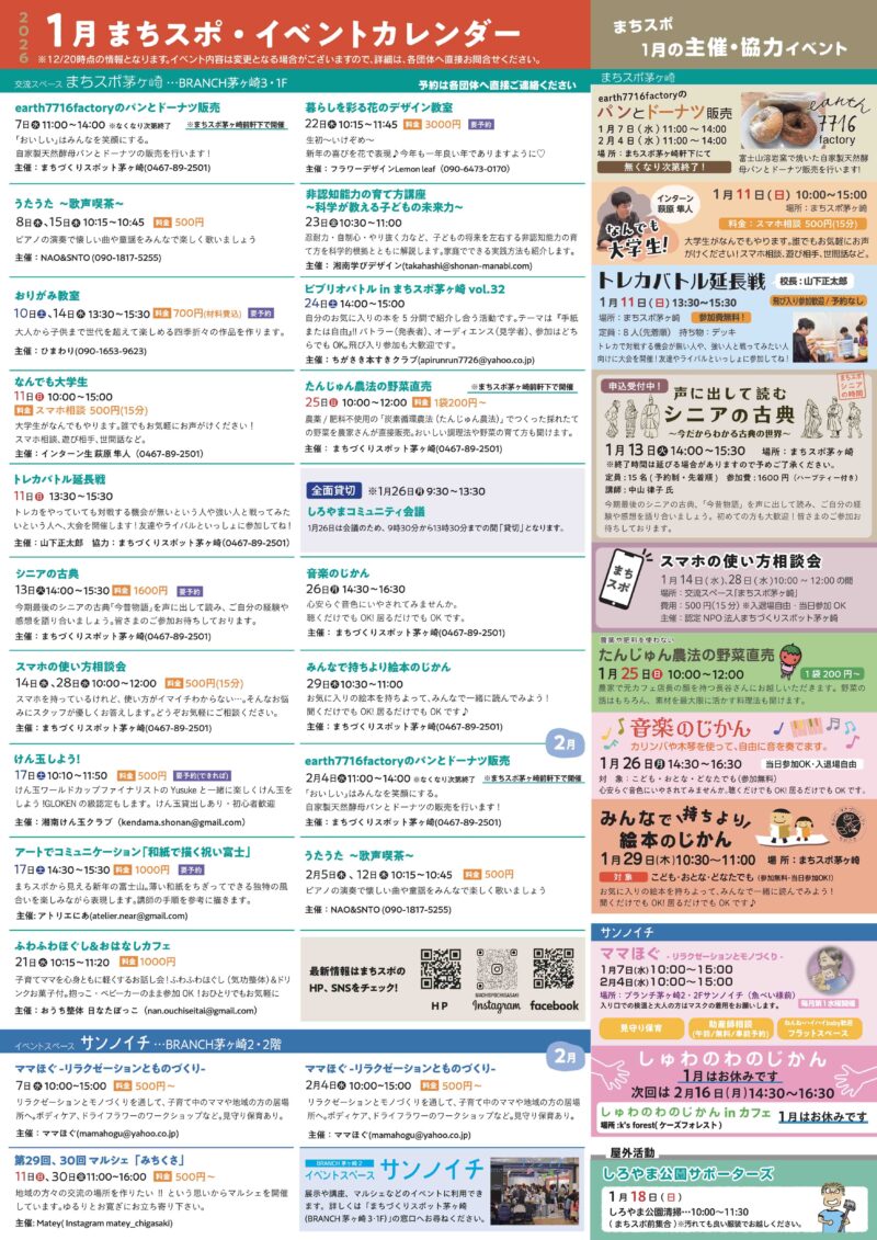 2026年1月イベントカレンダーを公開しました!