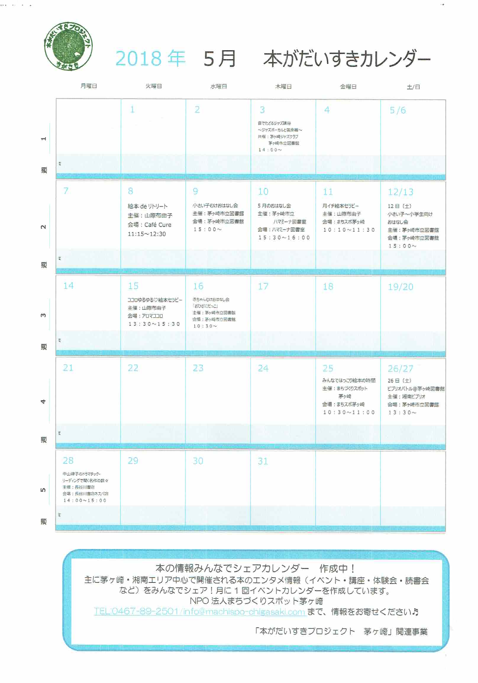 もうひとつの取り組みとして、茅ヶ崎・湘南エリアで開催される本のイベント情報を月ごとに紹介する