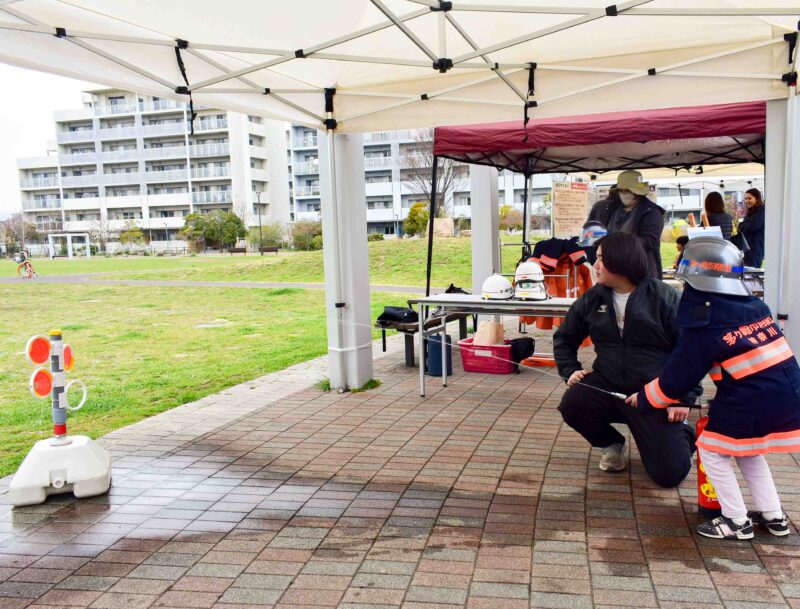 ご家族全員で防災スタンプラリーにトライし、防災クイズに答えたり、マシュマロ焼きを食べながら楽しくしろやま公園の防災設備について学びました!