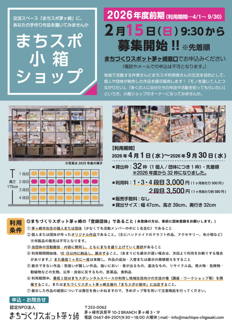 2026年度前期まちスポ小箱ショップ募集開始のお知らせ!