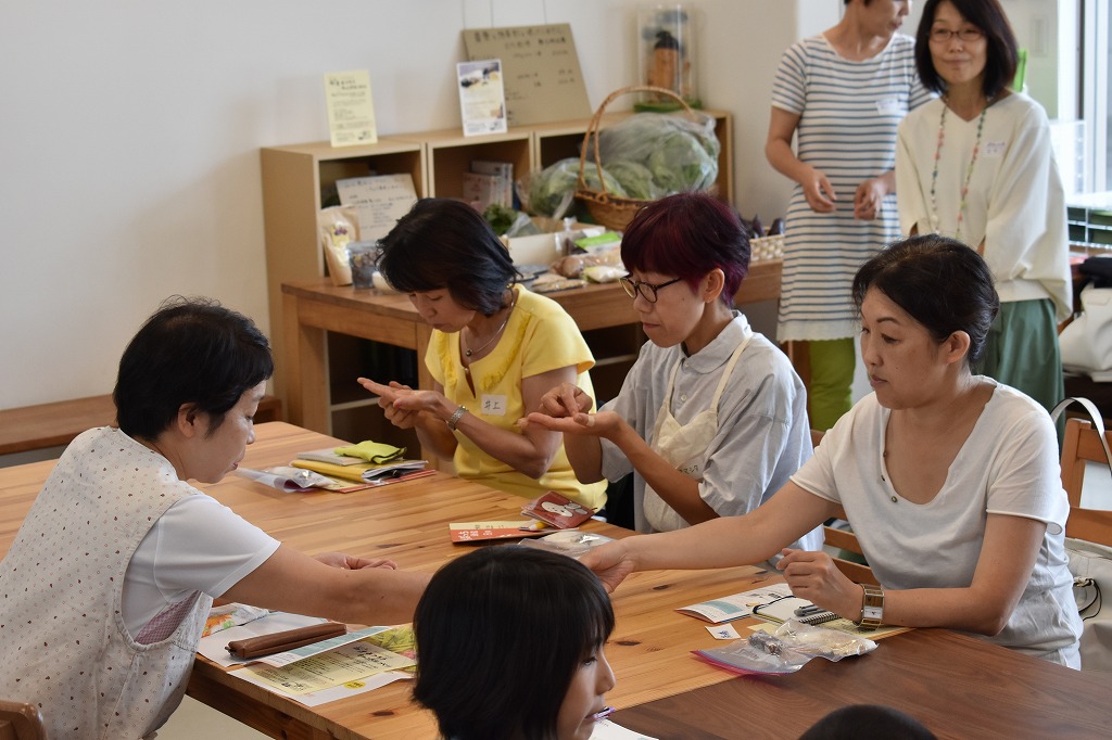 講師は松尾在住のやまぐち えりさん、下町屋でコミュニティスペース「アロマココロ」を運営する戸川 真佐子さん、