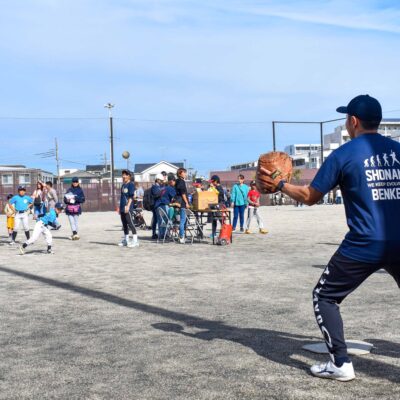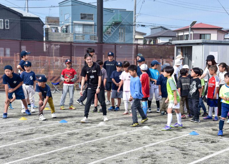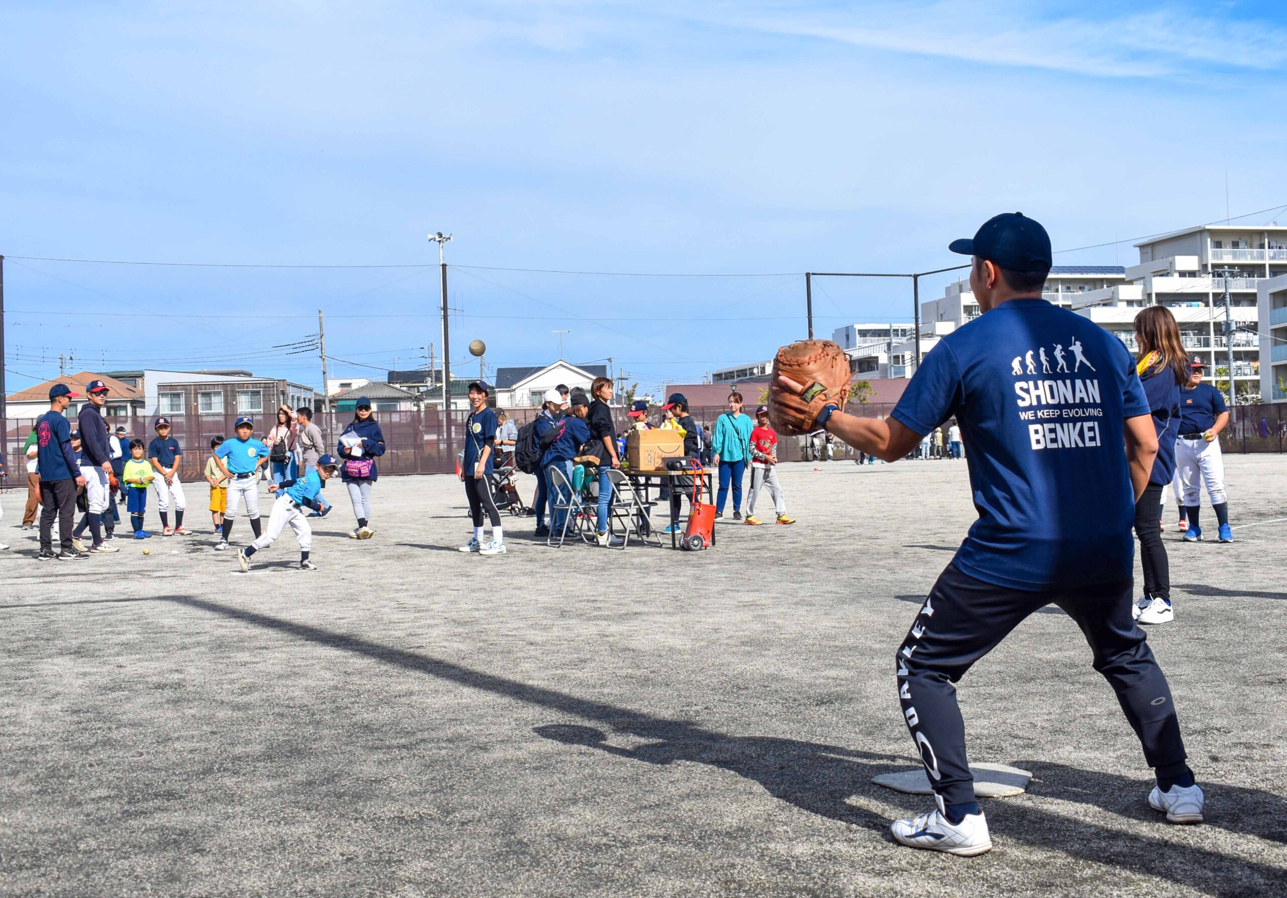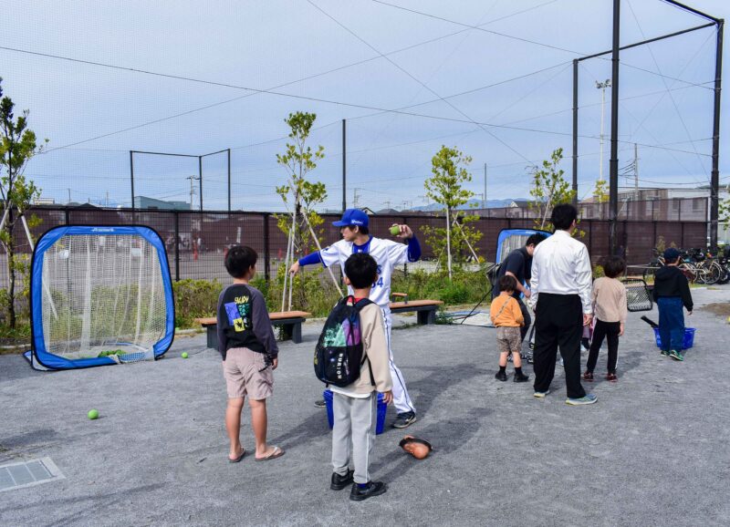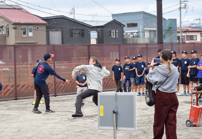 元プロ野球選手の寺田光輝さんの的確で分かりやすい指導に、野球少年たちが何度も並んで体験を楽しんでいるのが印象的でした。