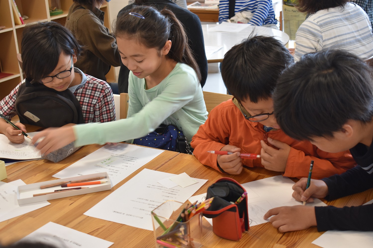 「おやこでワイワイ商店街」をPRするチラシをみんなで作ります。