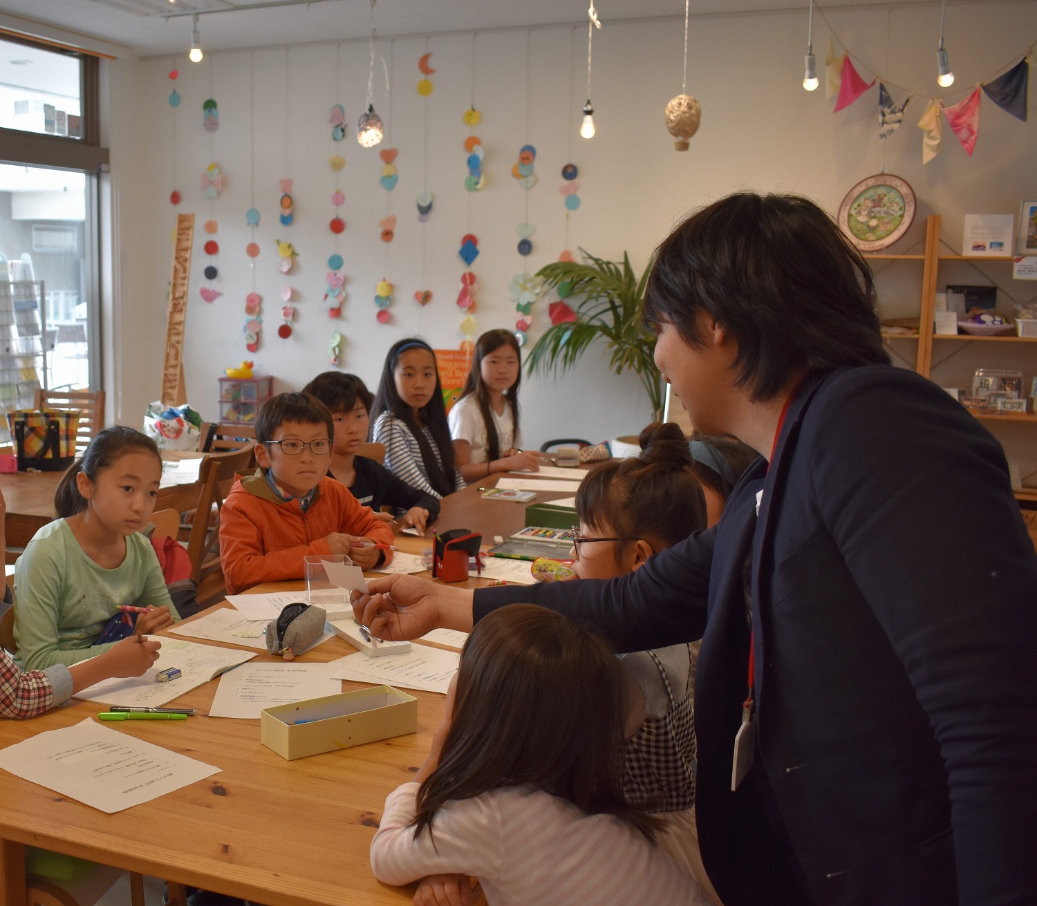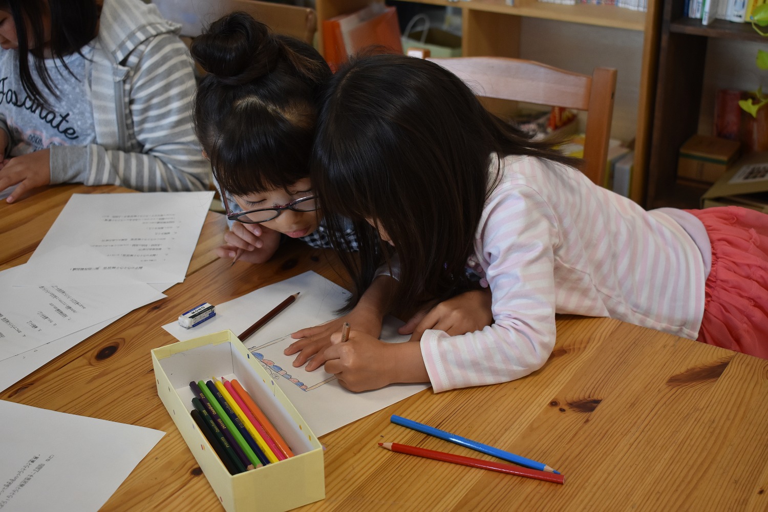 「どんな色にする?」「何をするお店かわかるように描こうね」